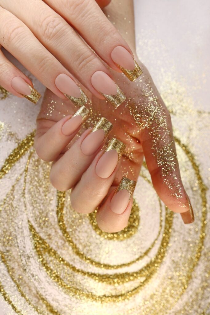 A golden pedicure is a luxurious spa treatment that typically includes a warm soak in gold powder, a gold-infused mud mask, and a massage with a golden cream and body butter.